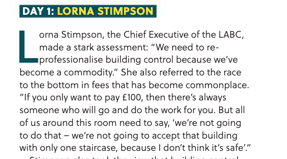 Stimpson is not making a “a stark assessment” – instead it’s “a series of lies” that are pedalled to the detriment of Building Control as a profession and then when anyone objects it’s labelled as “Both sides squabbling.” This then stifles any further engagement – but the damage has been done.